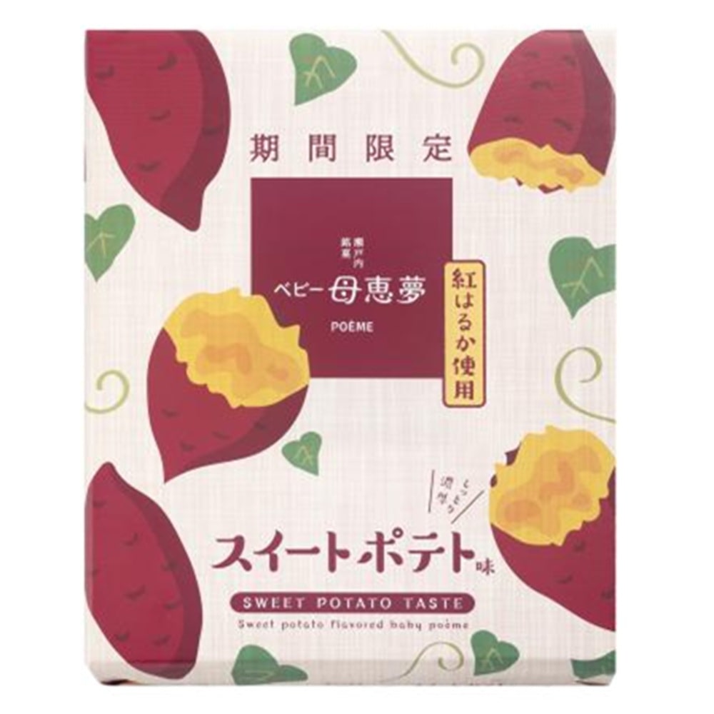 しっとりとした食感と上品な甘さが特徴の『紅はるか』をたっぷり使用しました。スイートポテトをイメージした濃厚な餡と香りを楽しめる秋限定のベビー母恵夢です。