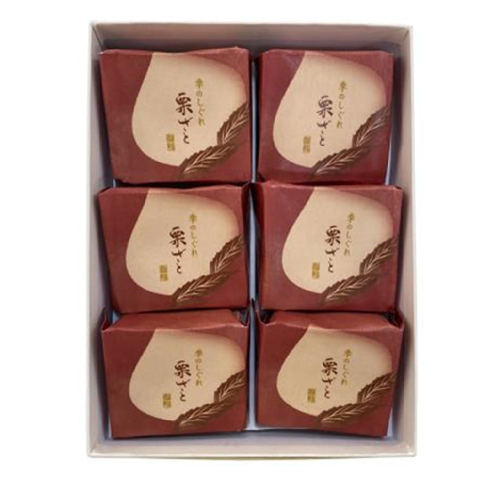 ほっくりとした栗の旨みを生かしながら、しっとり蒸し上げました。ほろりと口どけ良い食感が魅力の、三層のしぐれ菓子です