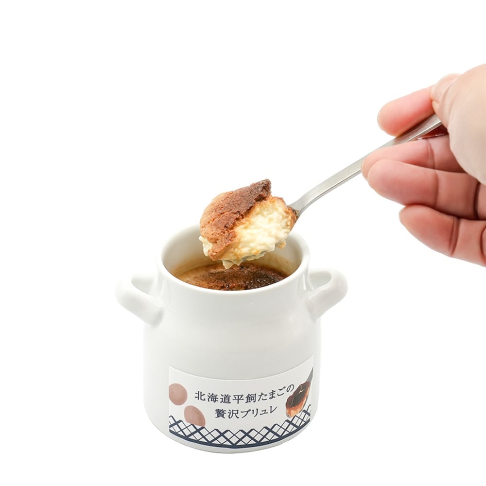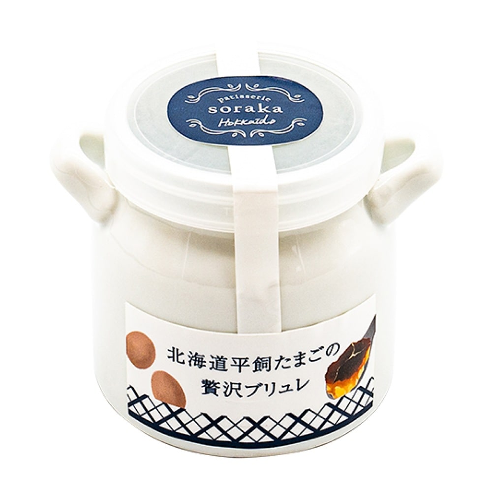 北海道産平飼い卵を使用した濃厚なブリュレ。生クリーム、牛乳、てんさい糖すべてが北海道産原料で仕上げています。上面はフランス産カソナードで香ばしく焼き目を付けています。