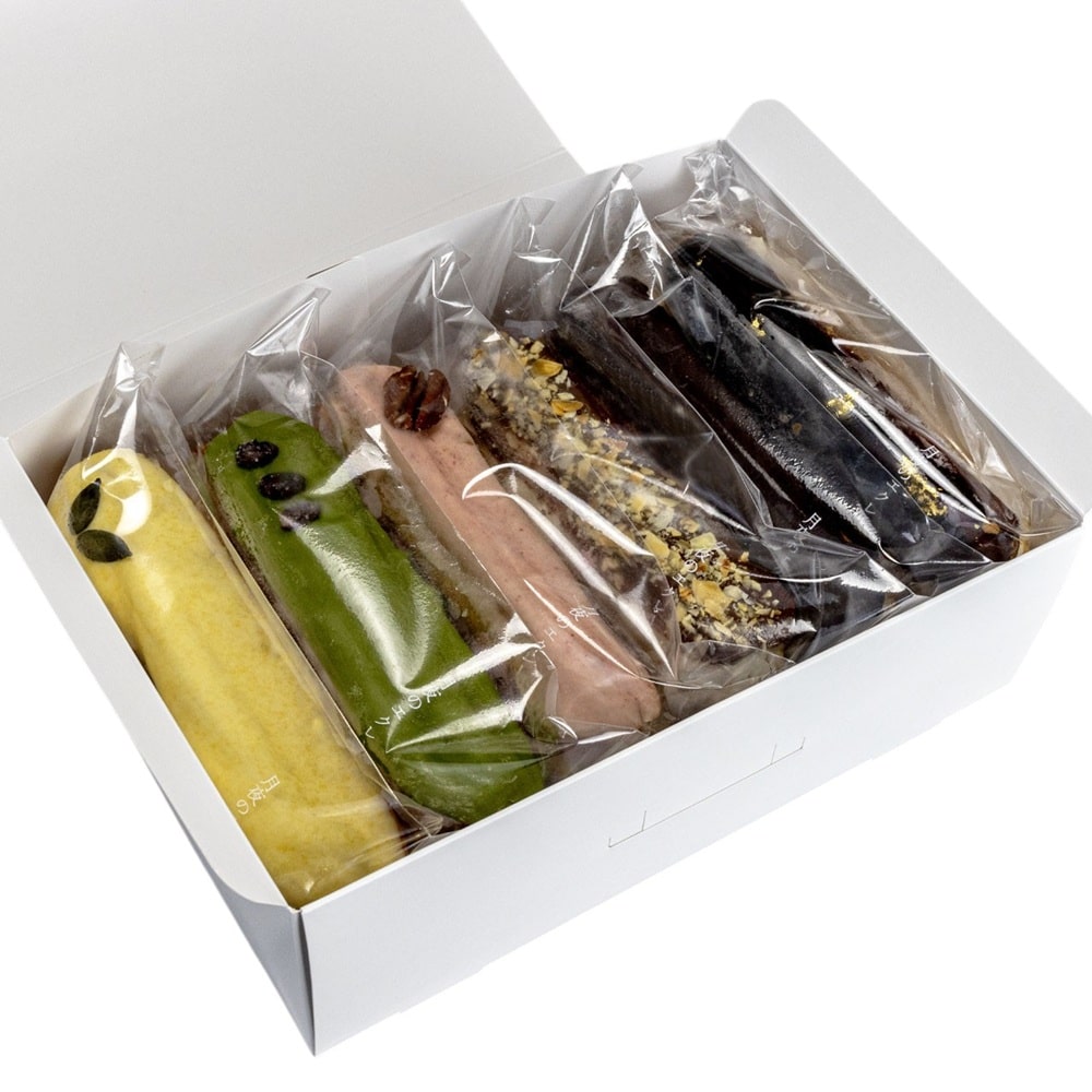 北海道産米粉で作ったグルテンフリー製法のエクレア。北海道ならではのフレーバーも含めた、たっぷり食べられる12本セット。冷凍のままアイスクリームとしても。上品な味わいが人気です。
