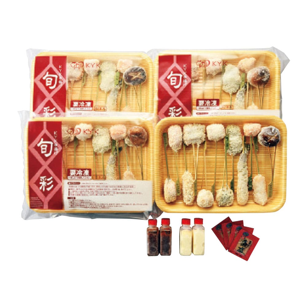 あぐー豚・鹿児島黒豚・サーモン&チーズ・海老など12種各4本、ソース2種、塩付き