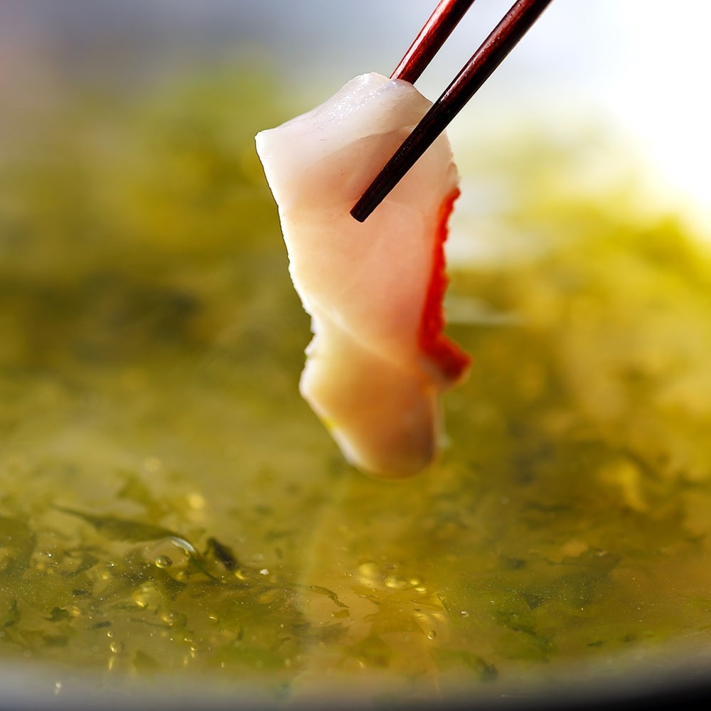 脂がのった金目鯛を出汁にくぐらせれば、とろけるような甘みに。そこに風味豊かなあおさが絡む口福。仕上げに葱油を添えて、柚子香るぽん酢で爽やかにいただけます。