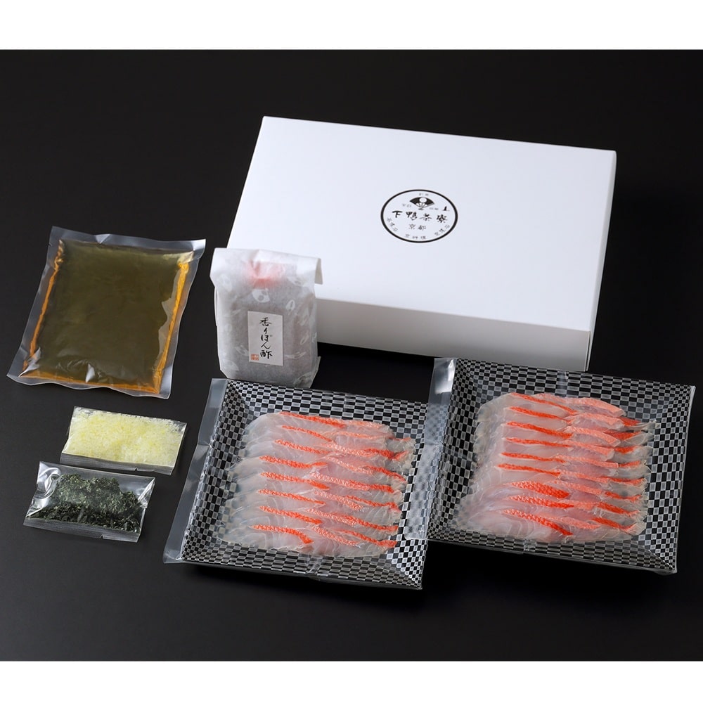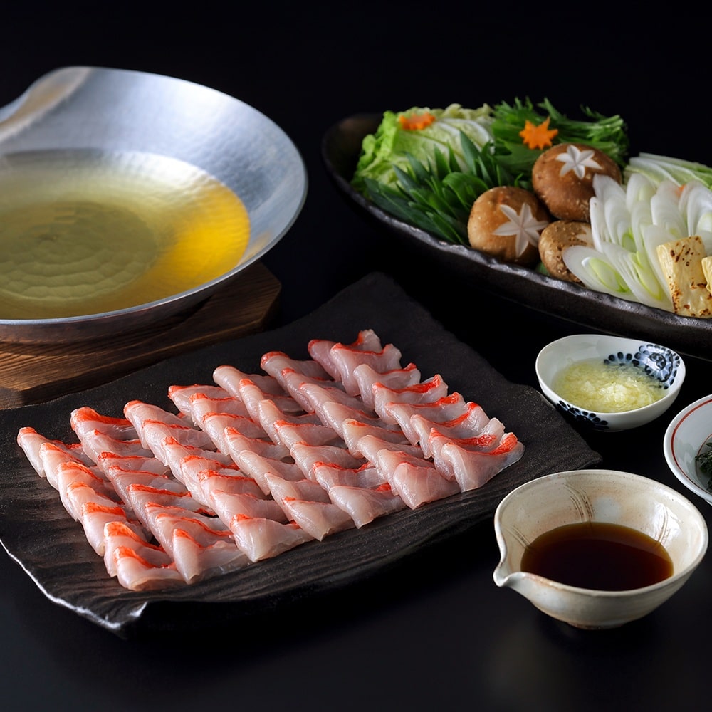 鍋だし500ml、香りぽん酢300ml、キンメダイ100g×2、ねぎ油30g、あおさのり7g