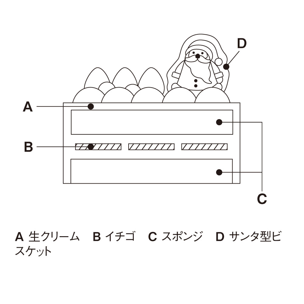 ふんわりスポンジと口どけのよいコクのある生クリームに、フレッシュな苺とブルーベリーを飾りました。ビスケットのサンタクロースがクリスマスを盛り上げます。