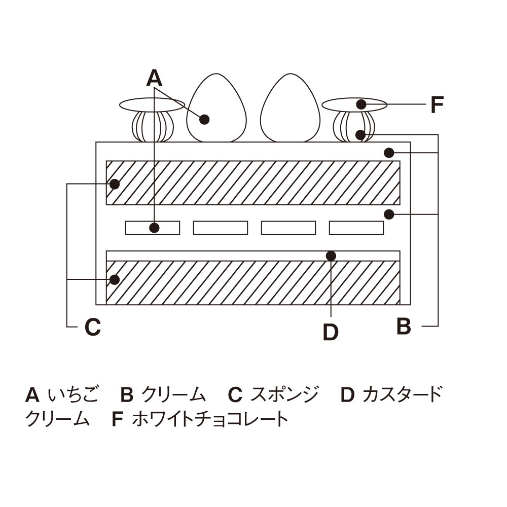 上質なクリームをブレンドし、コクと深みを追求したクリームを使用しています。中には、いちごとカスタードをサンドし、贅沢にいちごを飾ったプレミアムケーキです。