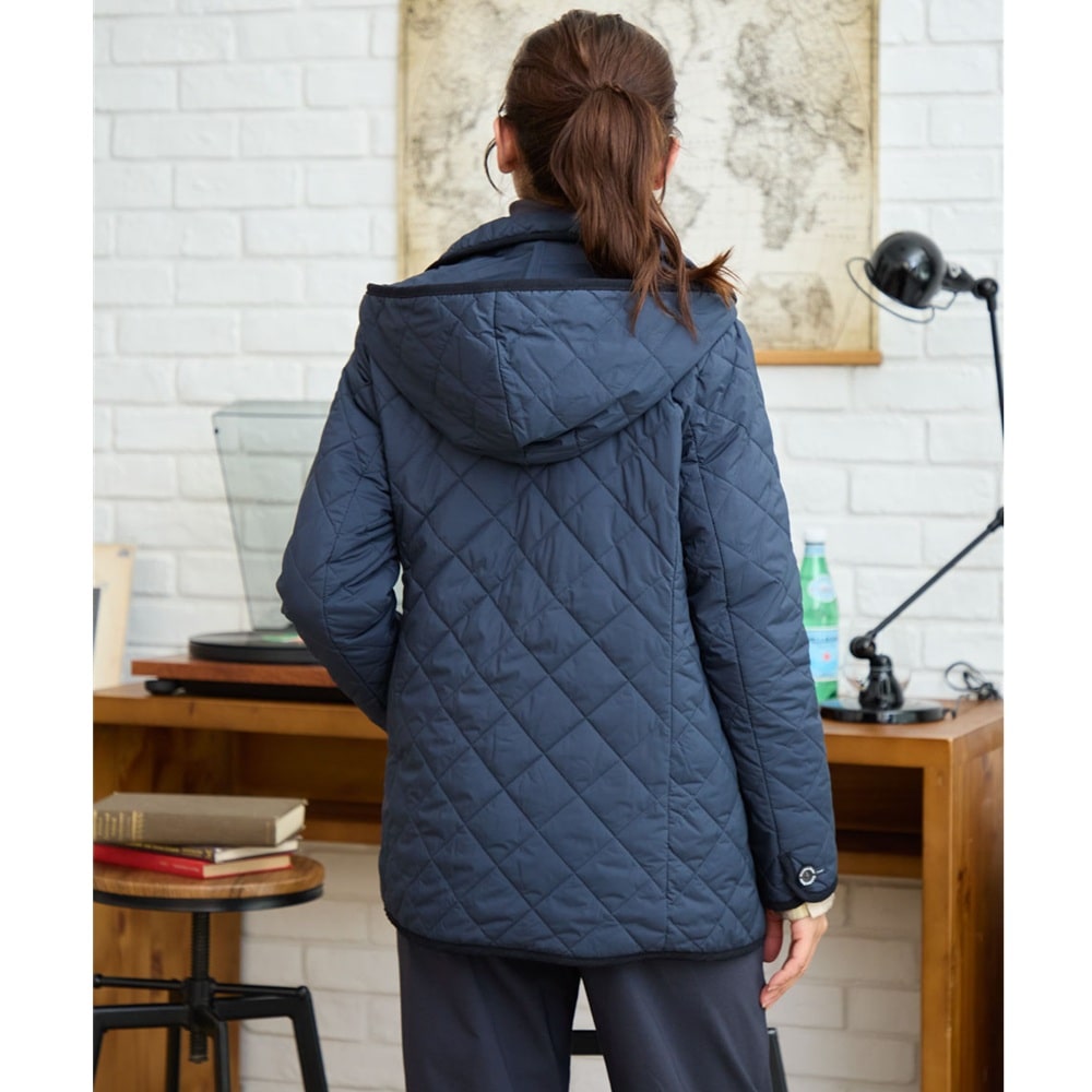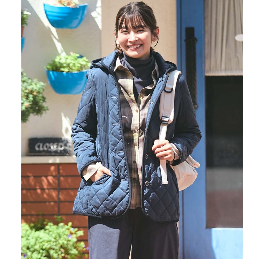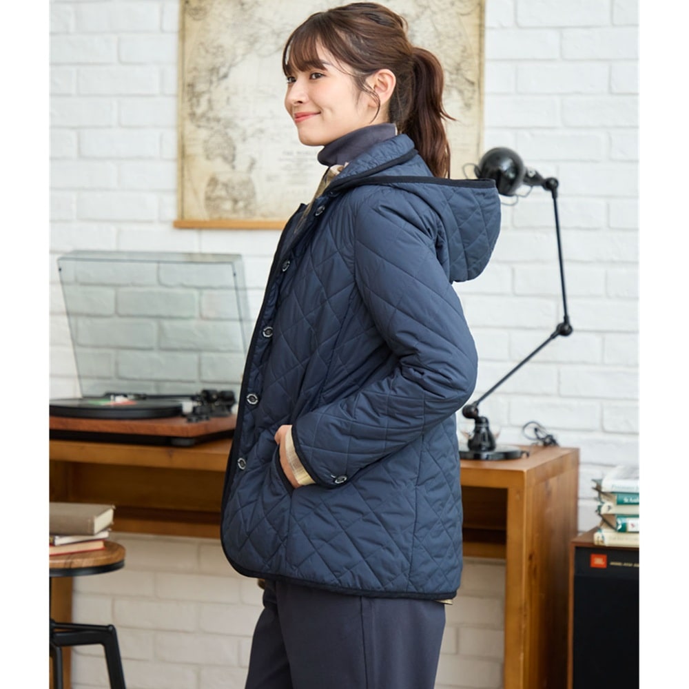 毎年ご好評いただいているキルトジャケットです。中綿にはソフトな風合いと膨らみを持たせる植物由来の素材を一部配合することで耐久性と保温性を高めました。コーデュロイの配色パイピングがポイントです。フードはファスナーで取り外しが出来ます。前中心はブランドロゴ入りの釦を、裏地はゴールデンベアオリジナルのチェック柄プリントを使用しています。昨年より約100g軽量化しました。ご家庭の洗濯機で洗えて、いつでも清潔に着用いただけます。