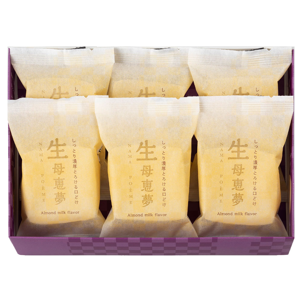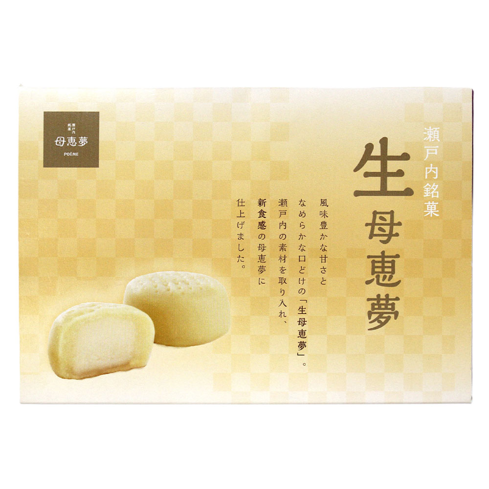 生地と餡が一体となった、なめらかな口どけの「生母恵夢」。鳴門金時芋をベースにバターをたっぷり使った生地でアーモンドミルクを加えたしっとりとした黄味餡を包みました。