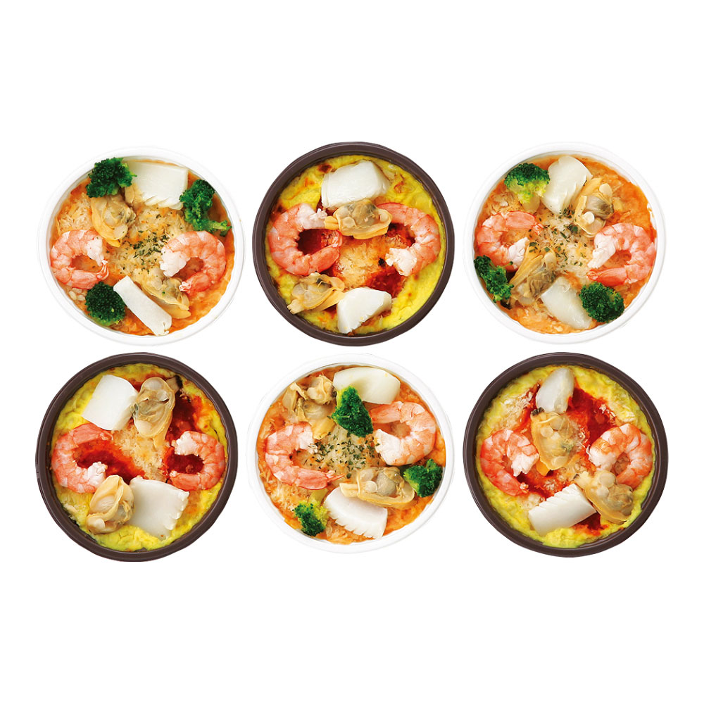 エビ、イカ、あさりを使用したクリーミーなホワイトソースのグラタンと、スパイシーに仕上げたドリアです。