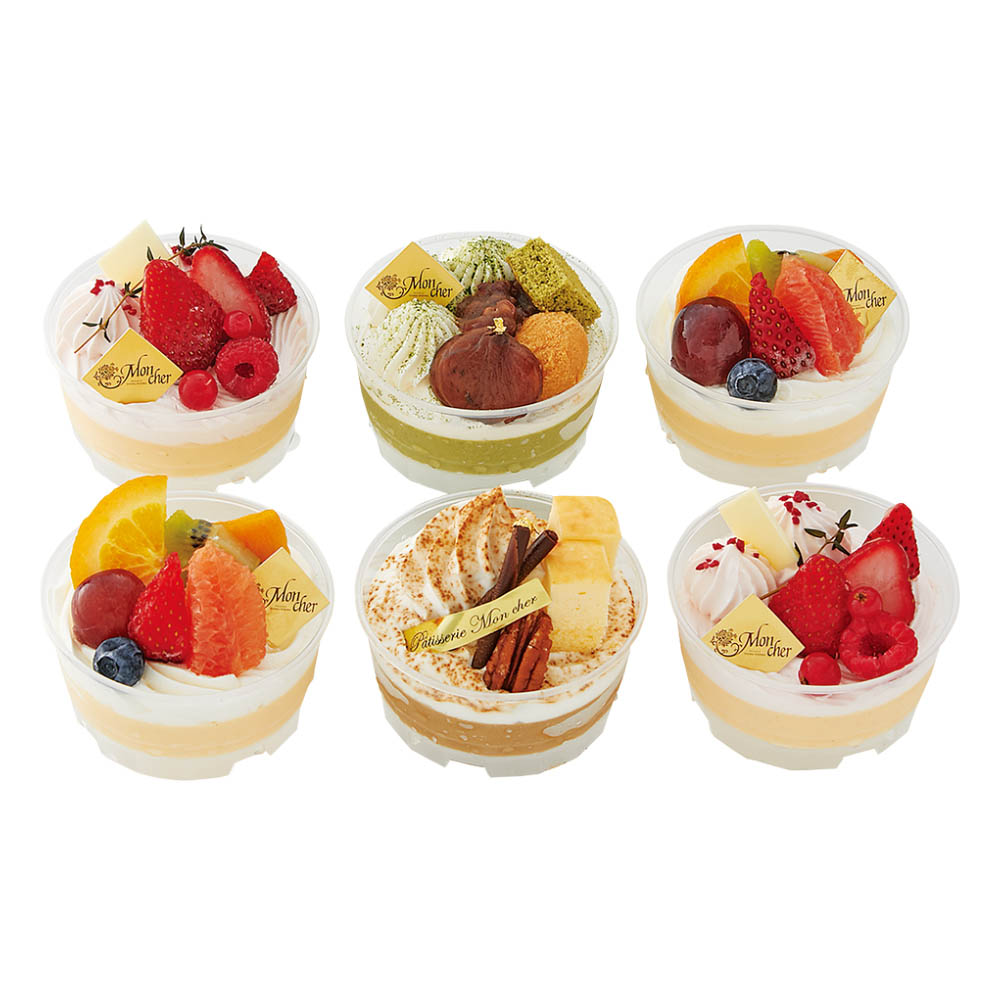 ベリー130g・フルーツ140g各2、抹茶130g、コーヒー120g