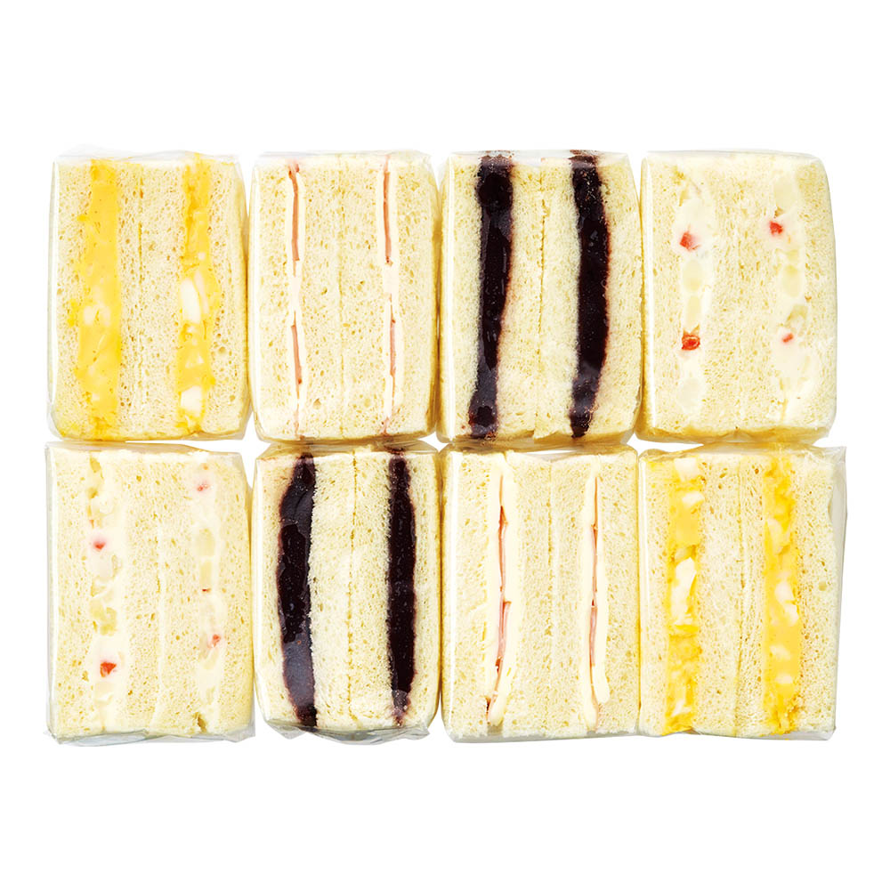 優雅なブランチにぴったりな、昔ながらのサンドイッチ。たまご、ハムチーズ、あんマーガリン、ポテトサラダの4種の味わいです。