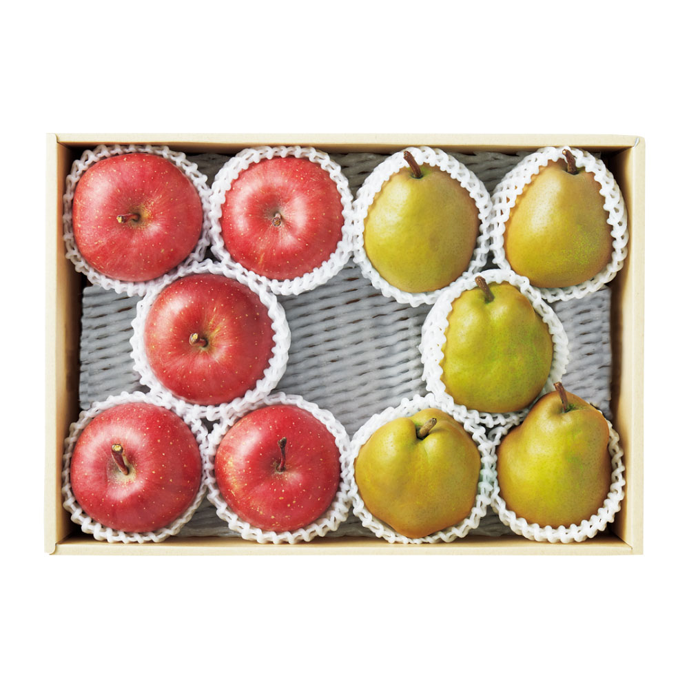 なめらかな舌触りと甘みが魅力の「金系ラ・フランス」と、冬の味覚、青森県産りんご。本場の味わいをセットに。