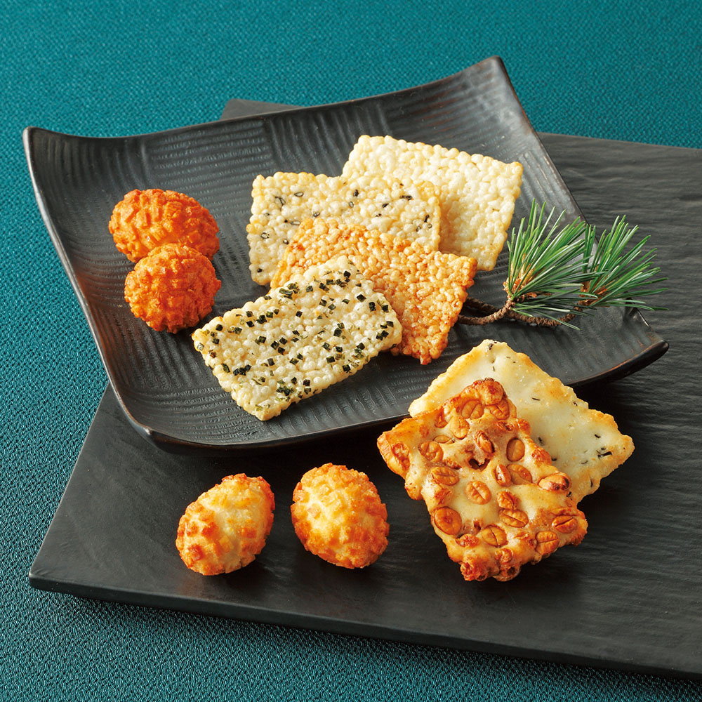 慶長(醤油・しぶき海苔・胡麻・うすくち醤油各6)、慶凰(醤油・塩各5)、豆柿・かきもち昆布各3