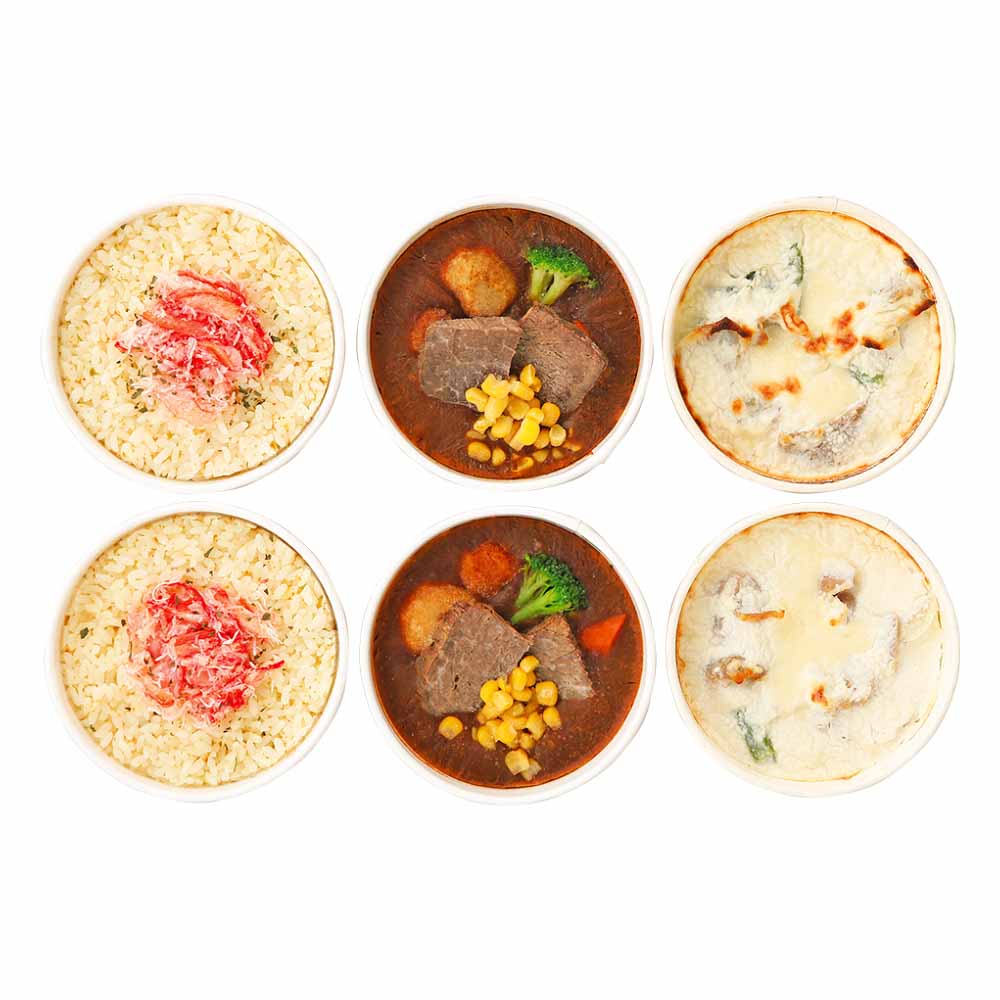 北海道産牛肉ビーフシチュー・ジャージー乳北海道ポークグラタン・北海道産紅ずわいがにピラフ各160g×2