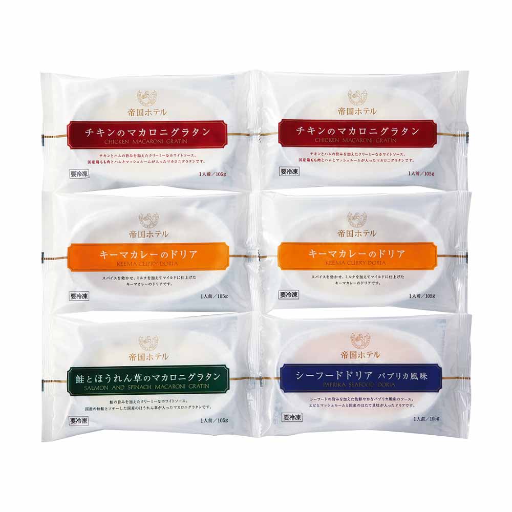 チキンのマカロニグラタン・キーマカレードリア各105g×2、鮭とほうれん草のマカロニグラタン・シーフードドリア パプリカ風味各105g