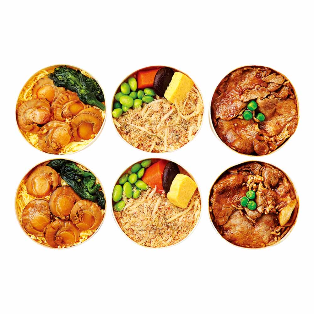 北海道名物「豚丼」をはじめ、「帆立ごはん」、かにの旨みを凝縮させた「かにごはん」のセット。