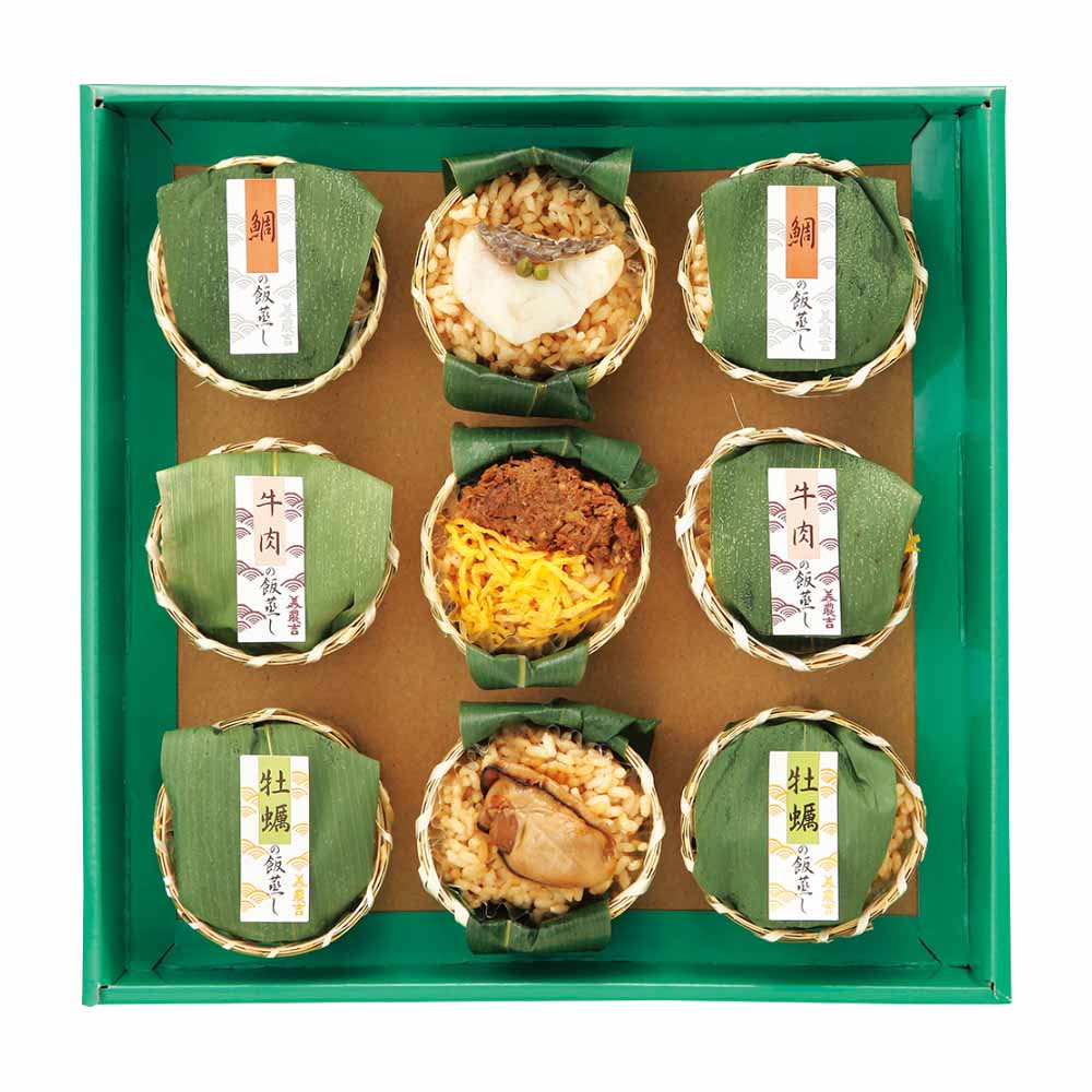 牡蠣の飯蒸し・牛肉の飯蒸し・鯛の飯蒸し各70g×3