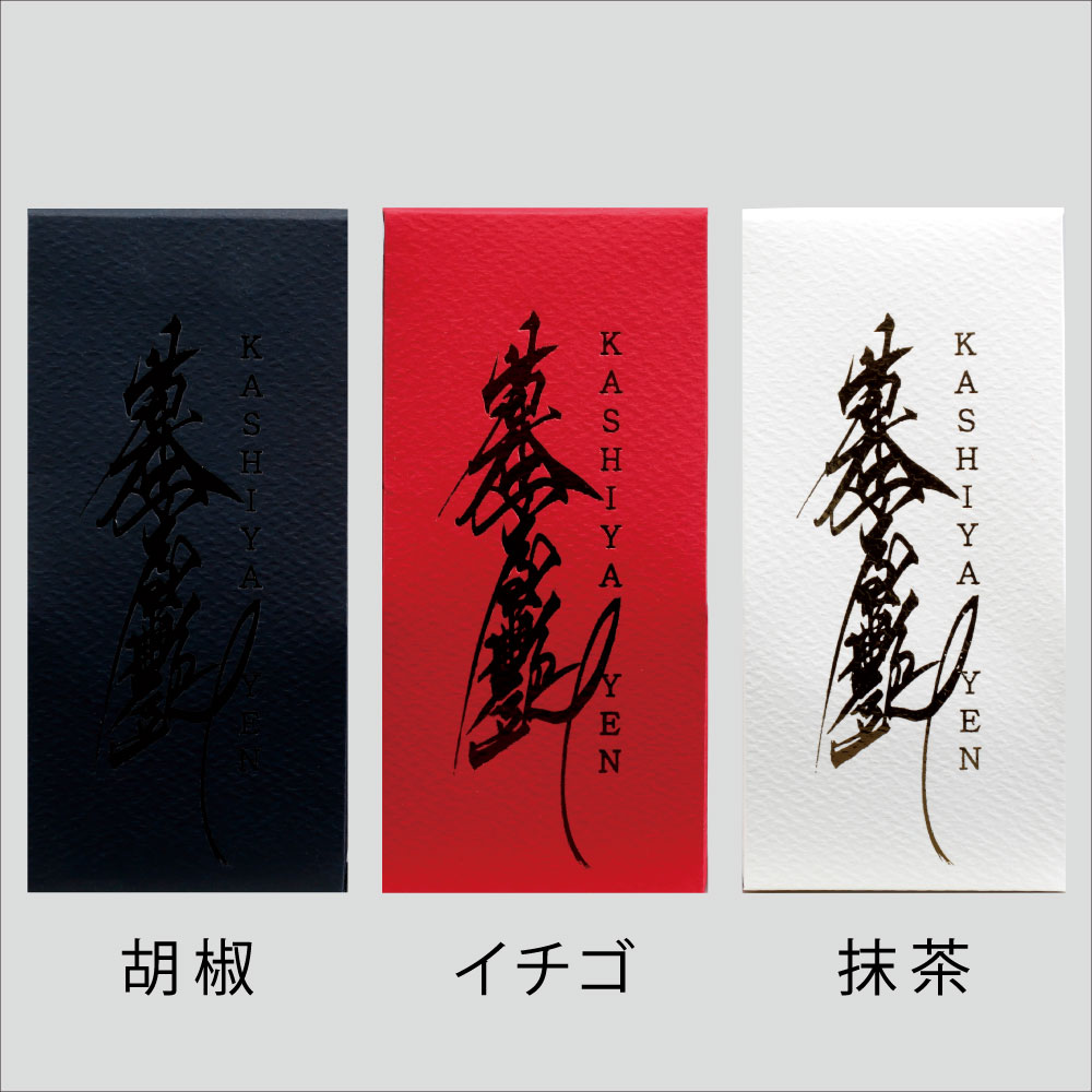 焼きあげたお麩を飴とチョコレートでコーティングした媛のショコラは、胡椒、イチゴ、抹茶の個性的な3つの味をご用意しました。