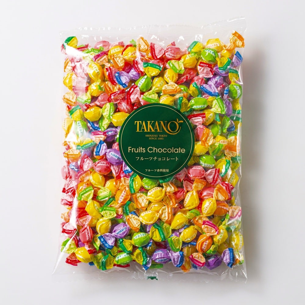 ブルーベリー・ストロベリー・レモン・マンゴー・メロン・バナナの6種類の味が楽しめるチョコレートです。果汁をパウダー状に加工してチョコレートに練り込み、フルーツの風味豊かに仕上げた「フルーツチョコレート」を、徳用サイズでご用意いたしました。
