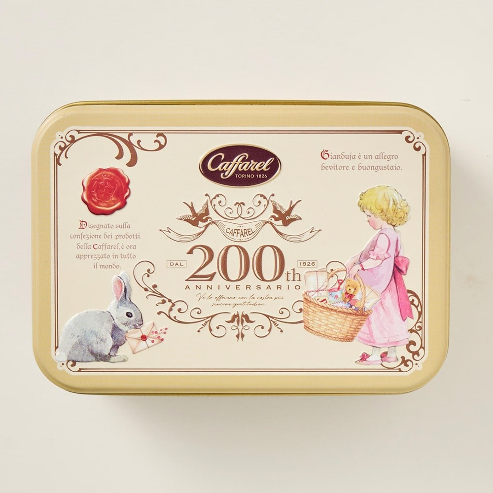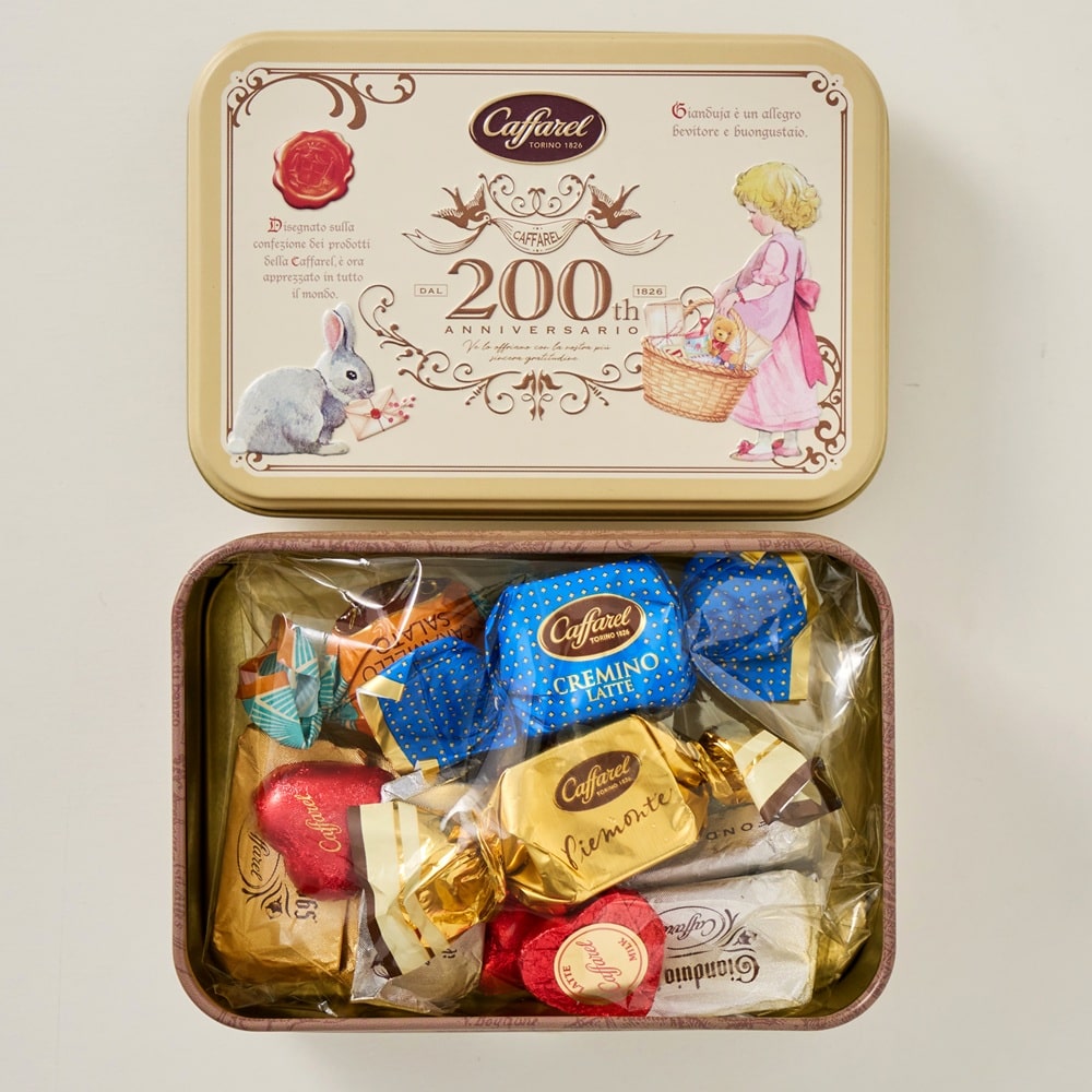 2026年に創業200周年を迎えるカファレルより、200周年記念缶が登場。女の子とうさぎが手紙を交換しあう様子を描いた缶に、カファレルを代表するチョコレートを12粒アソートしました。