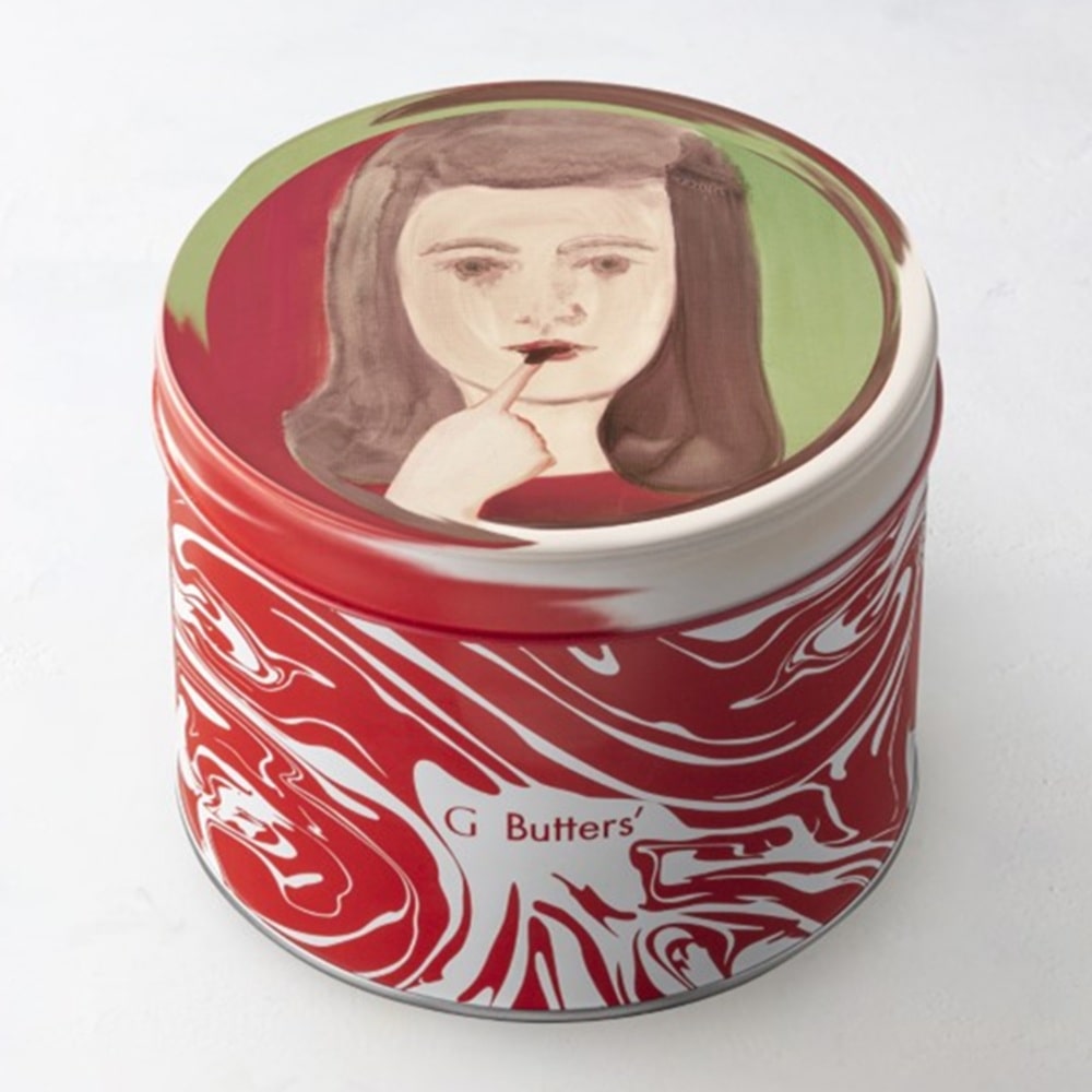 「ガレット デュオ」、「ガレット ショコラ」、そして「フィナンシェ アンバー」、「フィナンシェ ノワール」がそれぞれ2個ずつ入っています。華やかな色味の缶は、Gバターズを象徴する女の子の絵をあしらいました。紅白の明るい色味に、不思議な雰囲気のデザインが、魅惑的なGバターズの世界観を表します。個包装なので、人が集まる場へのお手土産にもぴったりです。また「ガレット」、「フィナンシェ」のそれぞれのフレーバーの違いを食べ比べてみたい人にもおすすめです。