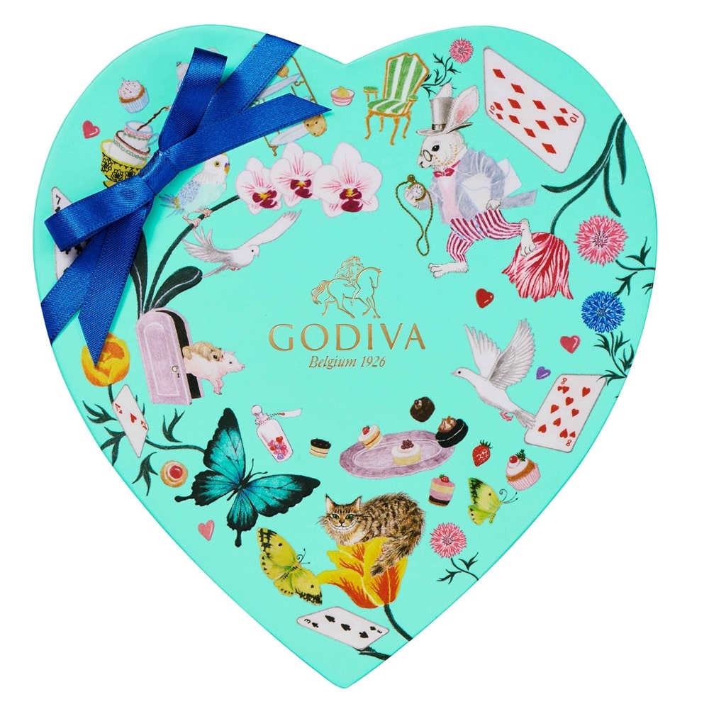 「不思議の国のアリス」の印象的なシーン「ティーパーティ」をイメージしたチョコレートを楽しめる、キュートな「アリスのティーパーティ コレクション」。 ティーパーティを彩る紅茶やカップケーキなどをイメージした限定チョコレートとトリュフなどを、物語のシンボルのトランプやティーセット、チェシャ猫や白うさぎ達をちりばめたハート形パッケージに詰め合わせました。
