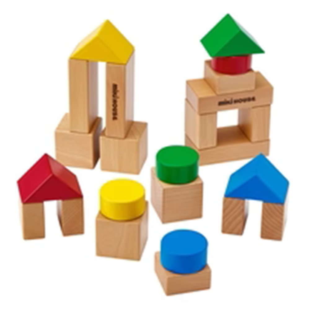 木の優しさを大切にした「つみき」のおもちゃです。ミキハウスのロゴの焼き印が入っています。 お片付け袋付です。