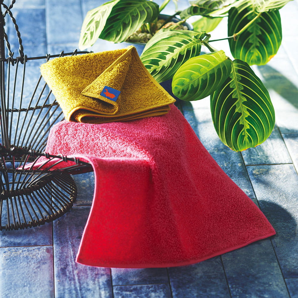 鮮やかで個性的な色合いをタオルで表現。オーガニックコットンとエコ素材の再生繊維を織り交ぜることで、複雑で印象深いカラーリング、爽快感のある拭き心地が生まれます。