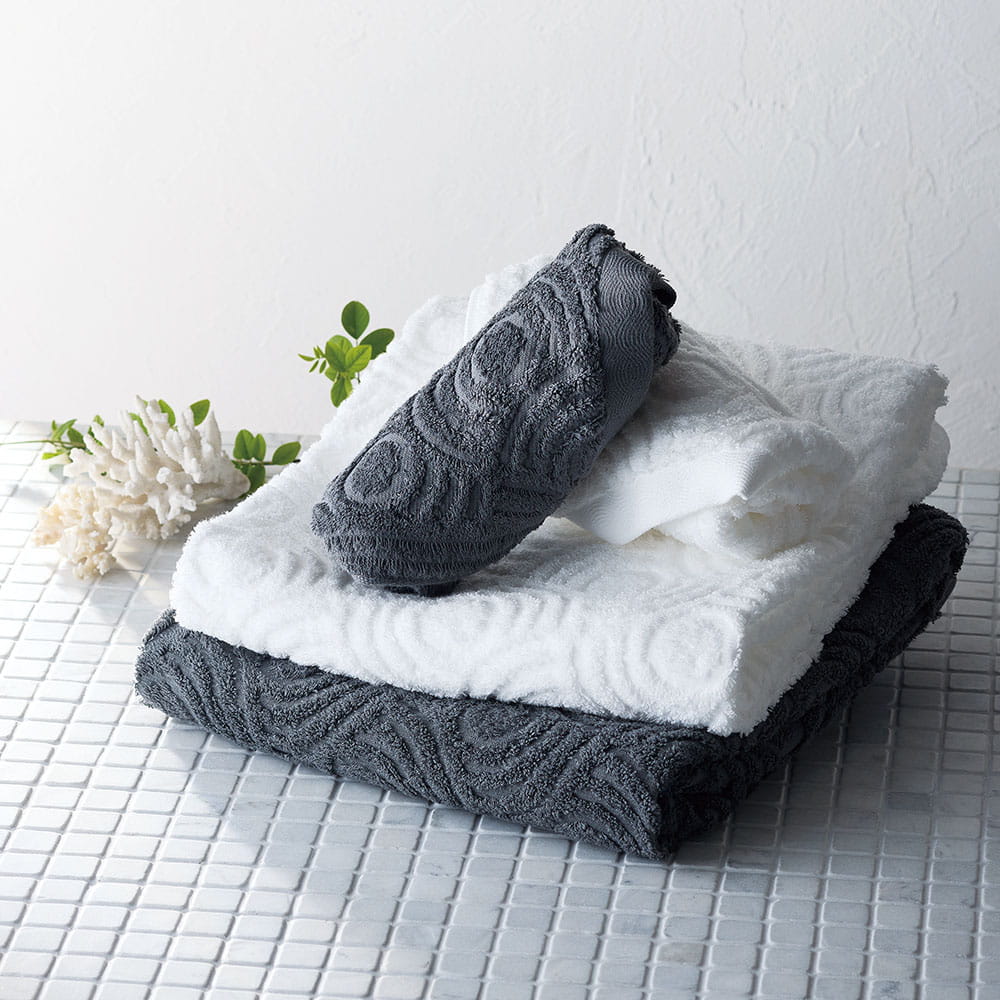 フェアトレードとは、開発途上国から原料や製品を適正な価格で買い付け、生産者や労働者の生活改善と自立を持続的に目指す貿易の仕組みです。2013年に国内タオルメーカー初となる国際フェアトレード認証を取得した〈ホットマン〉。セネガル共和国などで生産された国際フェアトレード認証コットンを100%使用し、途上国の原綿生産者のサポートにつなげています。“砂音”は、やや太めのフェアトレードコットンを使用し、砂紋をモチーフにした模様を凹凸ジャガードで表現したタオルです。〈ホットマン〉は創業時から大切にしてきた「お客様の快適で心豊かな生活に貢献する」という理念のもと、綿が持つ素晴らしい特徴を最大限にいかしたタオルを人と環境に配慮しながら作っています。世界中の未来やこどもたちにつながる、やさしさの詰まったギフトです。