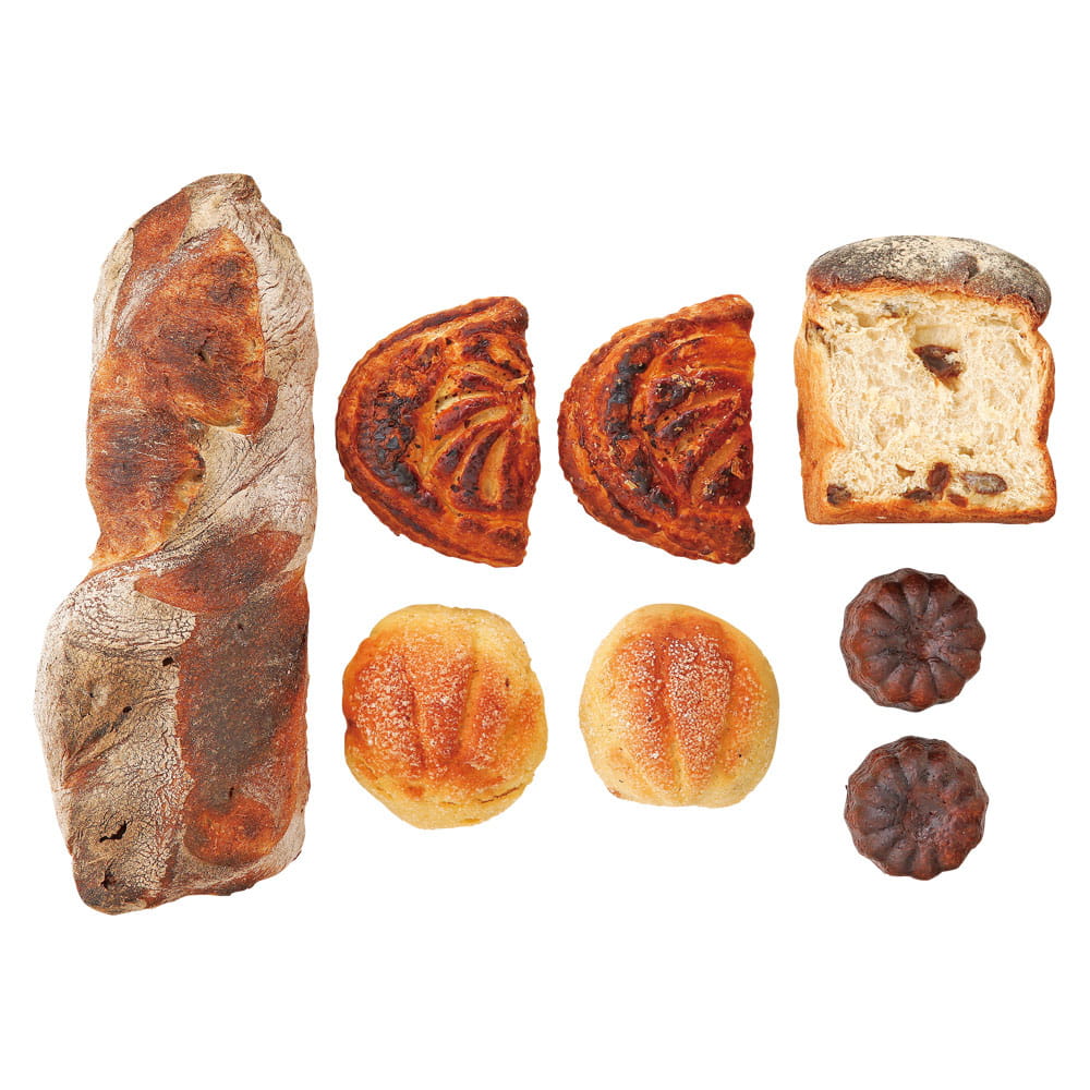 石窯りんごパイ(高島屋限定)2個、石窯カヌレ2個、石窯メロンパン2個、石窯レーズン食パン1/2個、石窯パリスエッテ1本