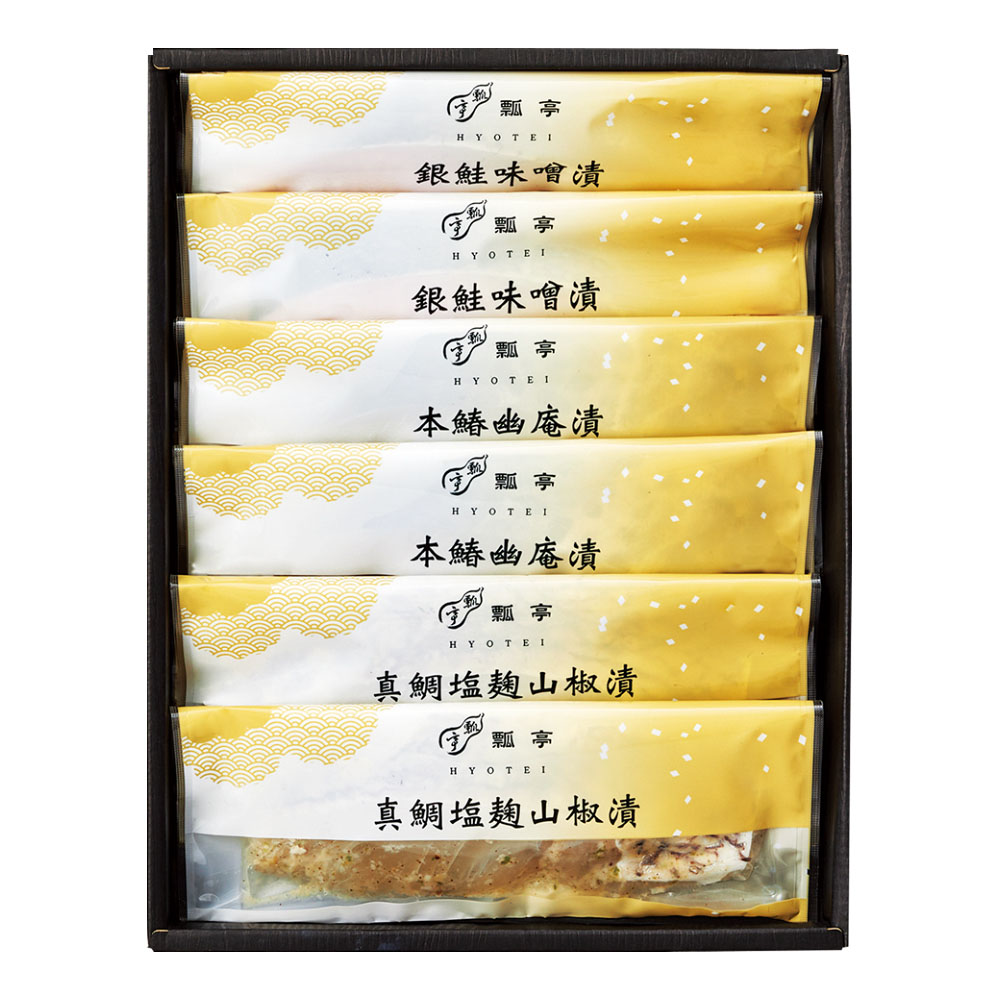 真鯛塩麹山椒漬・本鰆幽庵漬・銀鮭味噌漬各70g×2 計6枚