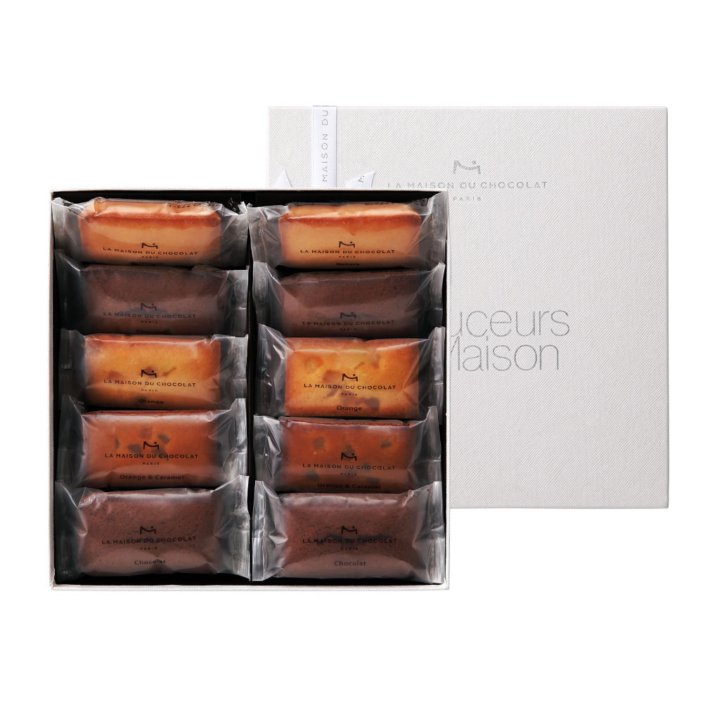 フランス・パリのチョコレート専門店。アーモンドプードルの風味が豊かな「ナチュール」、濃厚な「ショコラ」や爽やかな「オランジュ」などのフィナンシェ4種。