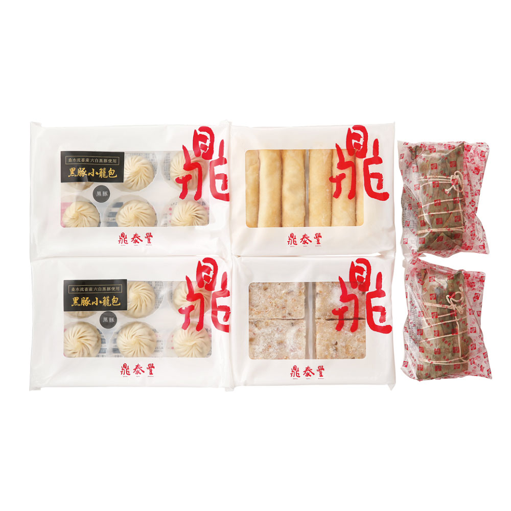 こだわりの小籠包に加え、えび入り棒春巻きや大根もち、豚肉入りちまきをセットに。鼎泰豐の人気メニューをお楽しみください。