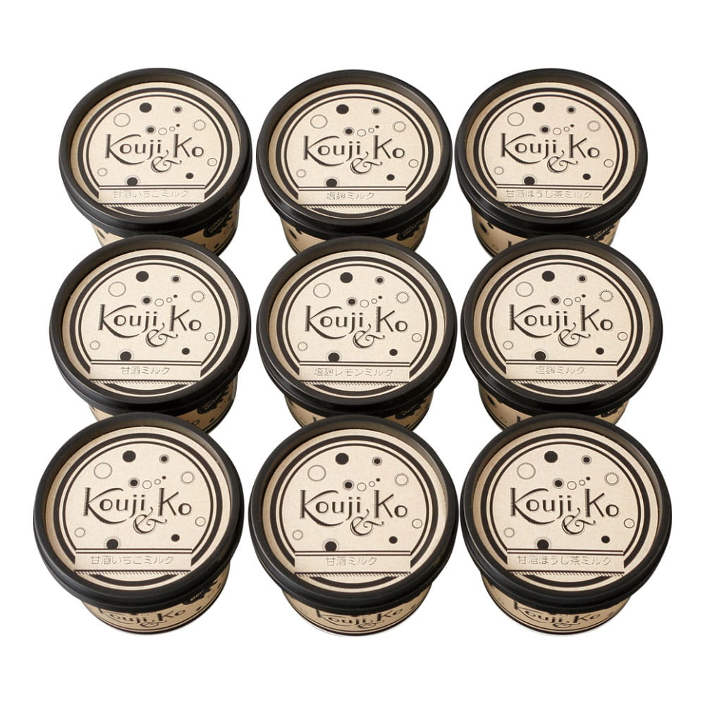 甘酒ミルク・甘酒ほうじ茶ミルク・甘酒いちごミルク・塩麹ミルク各100ml×2、塩麹レモンミルク100ml
