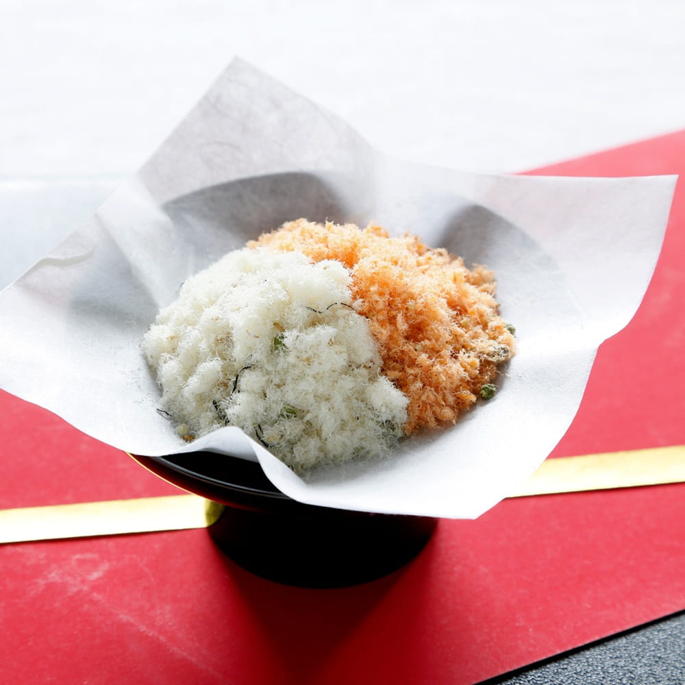 厳選した鮭と鯛を、料亭ならではの絶妙な火加減でふっくらと炊き上げた「そぼろ」の詰め合わせです。保存しやすく、日常の食卓に料亭の喜びを添える、ギフトに最適な逸品です。おめでたい紅白の色彩は母の日の贈りものに相応しく、炊き立てのご飯にはもちろん、お茶漬けや和え物など、様々なお料理にお使いいただけます。