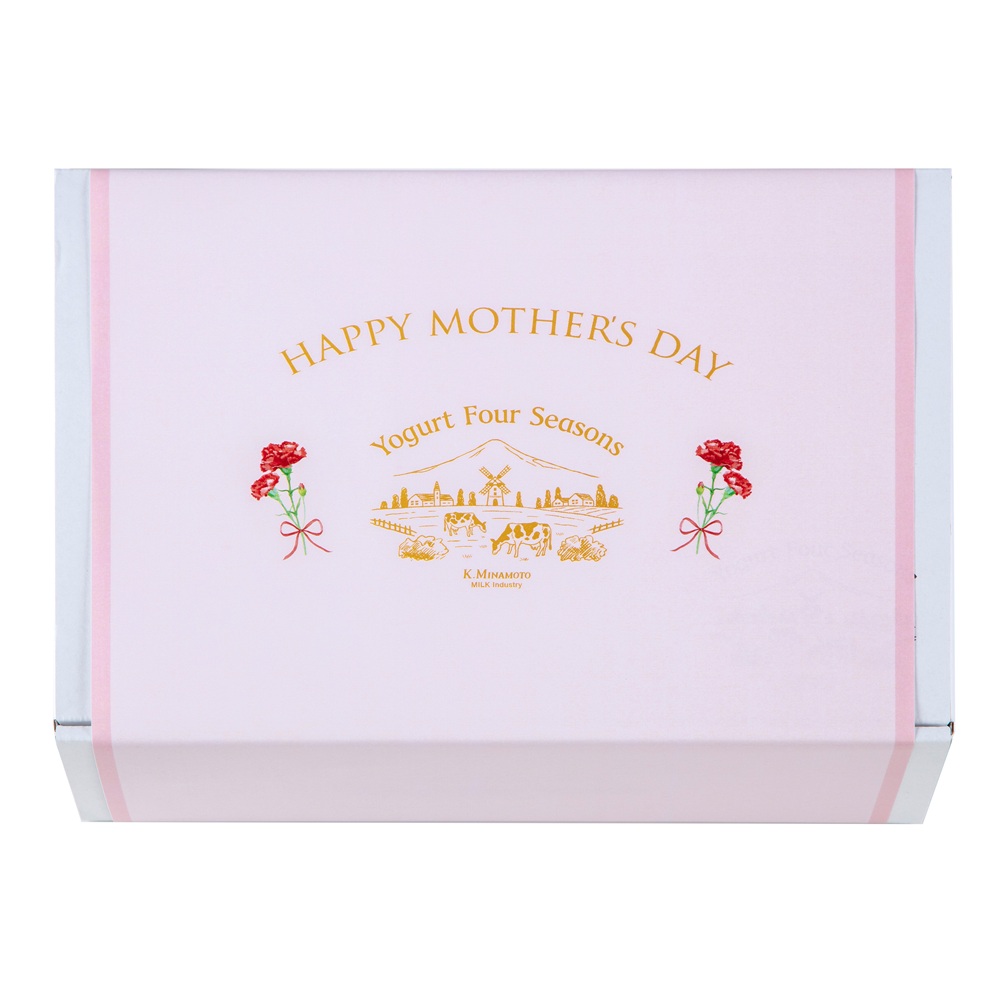 母の日にぴったりな2層のヨーグルトデザート「ももヨーグルト&ミルクティームース仕立て」を加えた、母の日限定のヨーグルト詰め合わせです。母の日専用の掛け紙をかけてお届けします。