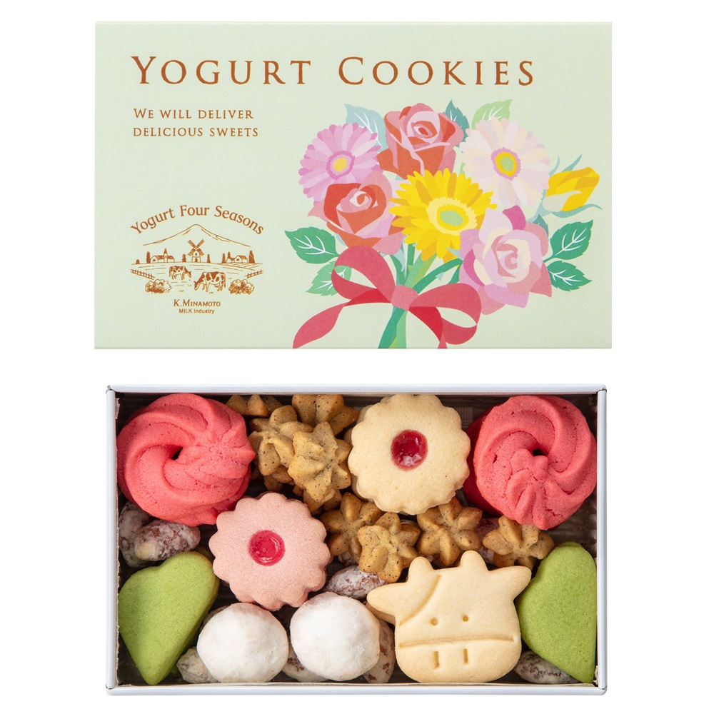 ヨーグルトやホエイなどを使用したクッキー缶から、お花を詰め込んだ華やかなクッキー缶が登場。大小さまざまな花が咲いたフラワー缶は母の日や大切な人への贈りものにぴったりです。花束が描かれたスリーブに入れてお届けいたします。