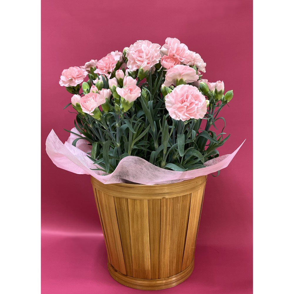 【母の日】5月6日~10日お届け/カーネーション鉢植え篭セット(ピンク)