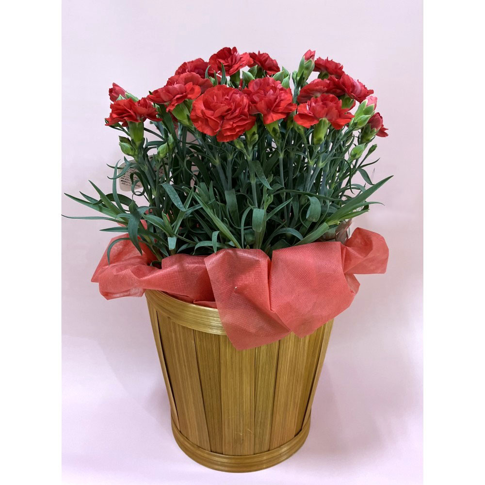 【母の日】5月6日~10日お届け/カーネーション鉢植え篭セット(赤)