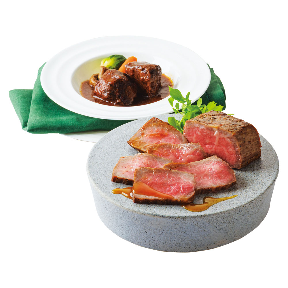 黒毛和牛ローストビーフと国産牛ホホ肉赤ワイン煮