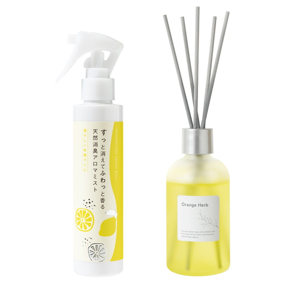 天然消臭アロマミスト(瑞々しい有機ライム)と天然消臭アロマ リードディフューザー(オレンジハーブ)のセット